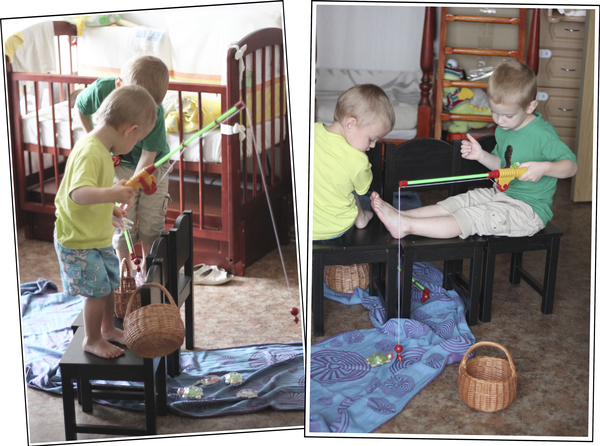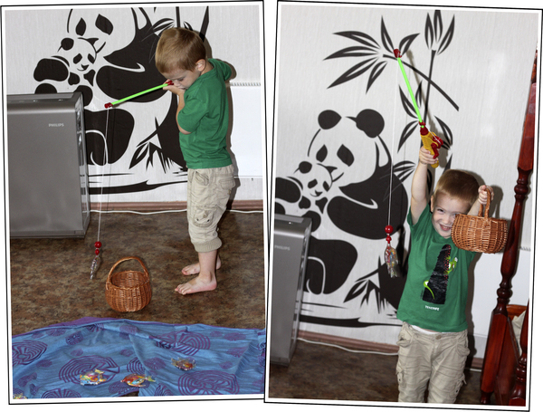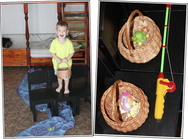 Для антуража - корзинки, чтобы было куда улов складывать. И у детей море восторга:)