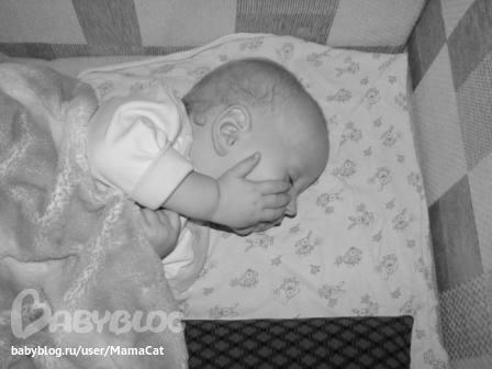 Мишка засыпал всегда на спине, свернув ноги на бок, вроде, ничего эдакого, но других под лет до 2х просто не было для него, вот так:
