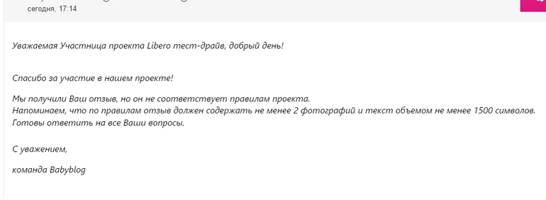 Ощущение, что они даже не читали отчёт, а только визуально оценили его на предмет наличия фото. Написала, что максимум, чем могу дополнить его, сделать сравнительное фото подгузника Либеро, который Андрей носит сейчас (размер шестёрка) и того, что привезли (четвёрка) и, если удастся, сделать фото ребёнка с надетыми до колен трусиками Либеро, дабы продемонстрировать, что они реально малы.