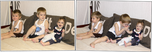 Мальчишки молодцы, у обоих очень активно речь попёрла. А в садик пока не пошли. Потому что сад до сих пор не передан в государством администрации в пользование, хотя давно готов и оборудован. Что-то застопорилось, что-то где-то в бюрократических процедурах дало сбой. Ждём каждый день. Рассказываю мальчикам, что в садике будет много деток, что будут там все вместе играться и кушать будут за маленькими столиками.