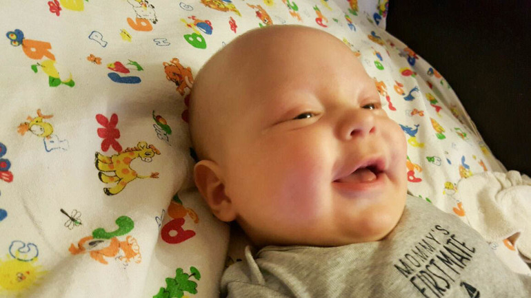Радует нас своими улыбками, а в очень хорошем настроении и гулением.