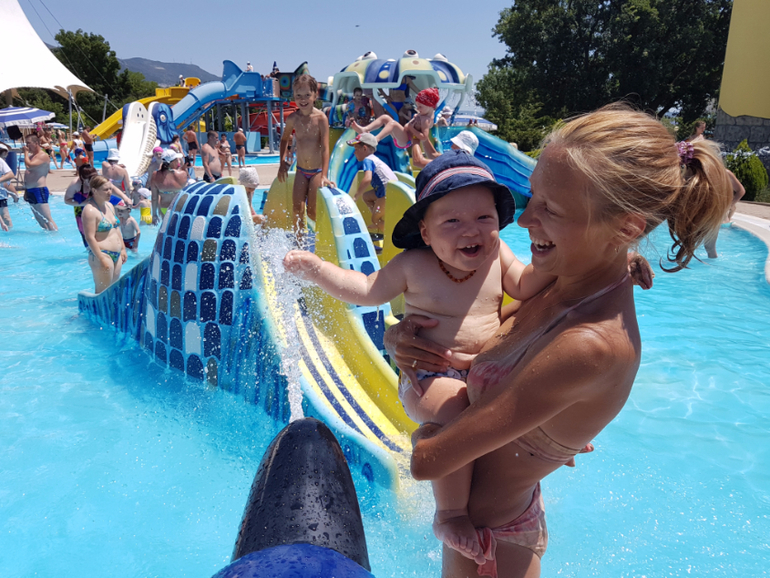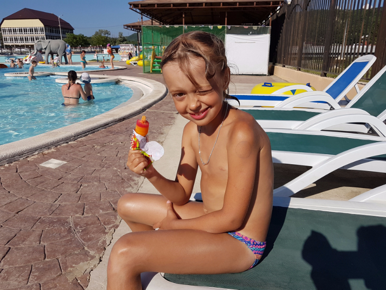 Дети купались, Даша зашла только по пояс. Все же горная вода, это не море ласковое :)