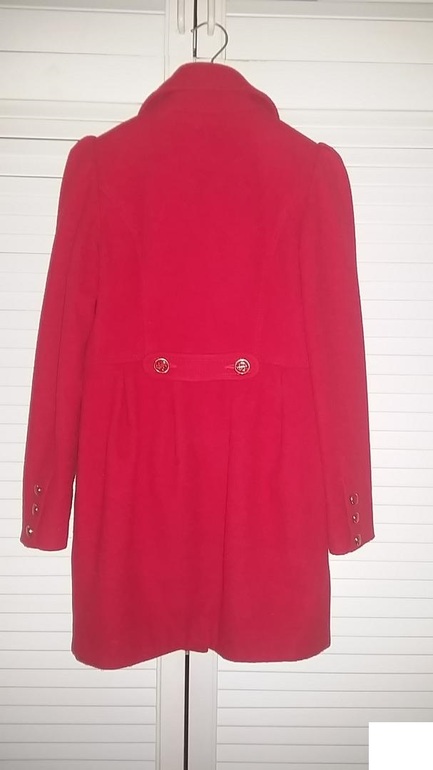 Этиктка с размером срезана, но вот точные замеры: длина по центру спинке-72см, ширина подмышками-41см, рукав внешний-55, плечо 7см, рукав внутр.-43см