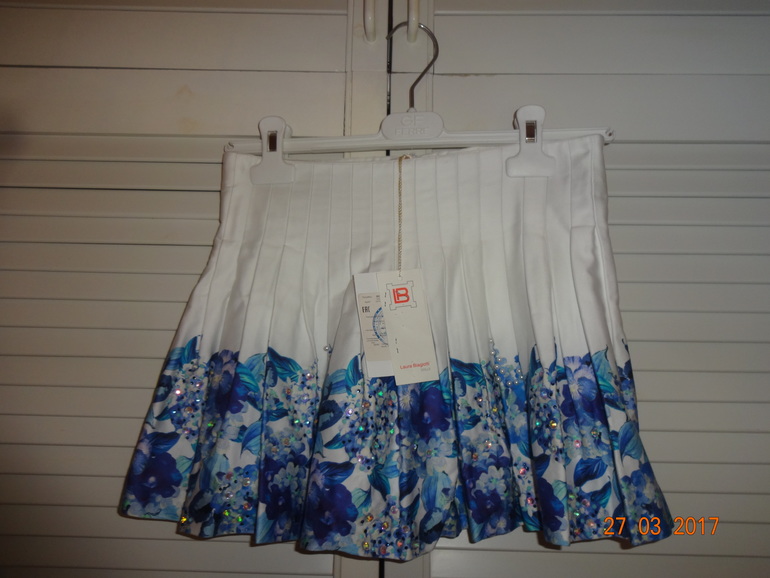 юбка р.11/12 , талия 35см утяжка есть, длина по боку 33см + футболка р.13/14 тоже новая))) Комплектом 7т ( отдаю как и покупала со скидкой) Почта ваша!
