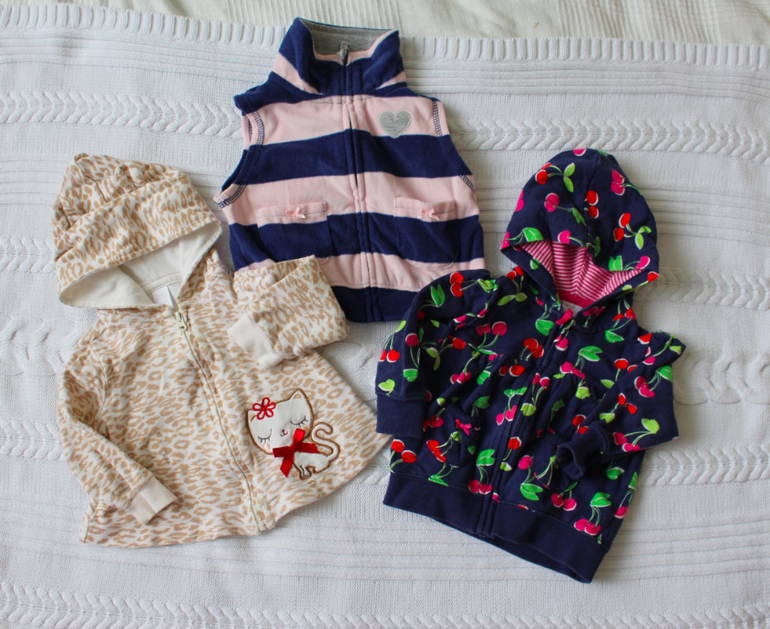 по 300 руб курточки 3-6 мес, жилетка 9, с вишнями 9