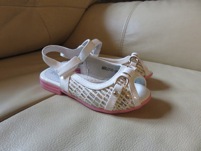3) Нарядные босоножки 26 размер, чуть маломерят стелька 16 см. Верх иск. кожа, внутри натуральная. Лучше на неширокую ножку, нам тесноваты. НОВЫЕ. Очень нарядные, украшены пайетками. 500 руб![]()