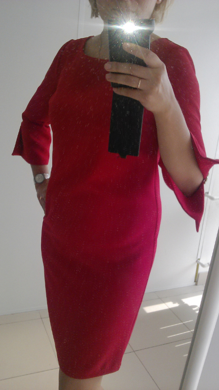 №9 Офисное красное платье.. 48, длина 96 см, 1500 1100рублей