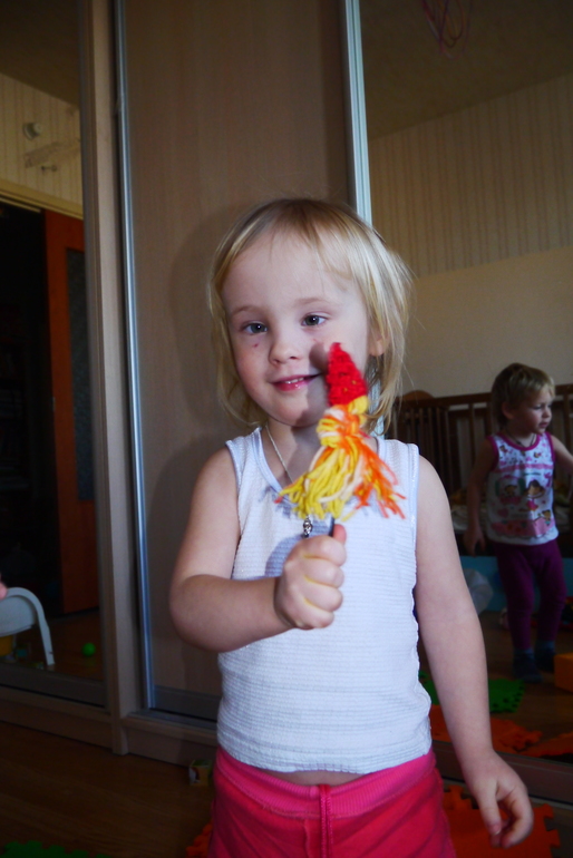 Косынку мама сама вязала, не нашлось красного кусочка)