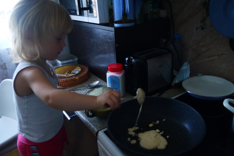 После сна мы пошли кулинарить, папа наш был в шоке немного, то и дело кидался спасать детей)))
