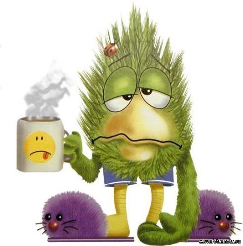 Сдавала кучу анализов и в итоге: понижен гемоглобин (ну это прям как всегда... немного ниже нормы); зато сахар в норме, а то пугали, что повышен; мочу пересдавать уже четвертый раз потому как постоянно находят лейкоциты...(все время до этого было все в норме и без отклонениий) склоняюсь к тому, что появились они из за того, что я заболела. (Вот какая я молодец).Как ни странно подхватила вирусяру в больнице.... Температуры нет, а поднималась максимум 37,3. Зато вот насморк не проходит вообще почти (всегда с этим было у меня тяжко). Итак уже тяжело дышать, а тут еще и насморк. Ну и ко всему прочему больное горло. Около 3х дней оно просто болело невыносимо...сейчас я его почти не чувствую вовсе. Зато кашесь из сухого стал дерущим мокрым. Спасаемся горячим чаем. Мед мне нельзя, я аллергик на него. Лимон тоже не помогает... Полоскать солью содой тоже уже не вариант. В общем кошмар одним словом. выгляжу как домовенок