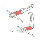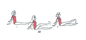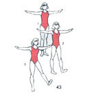 Выполняйте движения без перерыва, ритмично, не опуская ноги. Живот втягивайте. Важное значение имеет также дыхание в исходной позиции (1) - ноги вместе: сделайте глубокий вдох и медленно выдыхайте во время последующих 4 движений (раздвинуть ноги-скрестить-раздвинуть-сомкнуть). Это также прекрасное упражнение для бедер.