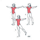 2. Вытяните левую ногу в сторону, пятку оттяните вниз, пальцы - в сторону голени. В этом положении сделайте скользящее движение ногой в сторону. Теперь медленно поднимите левую ногу, не сгибая колена.