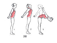 3. Теперь наклоните туловище вперед как можно ниже, одновременно поднимая как можно выше руки за спиной (не перенапрягайтесь, учитывайте свои возможности). Оставайтесь в этом положении, считая про себя до 10. Медленно разогнитесь, не размыкая рук, затем разомкните их, опустите и расслабьтесь. Начните сначала из положения 1. Повторите 2-4 раза.