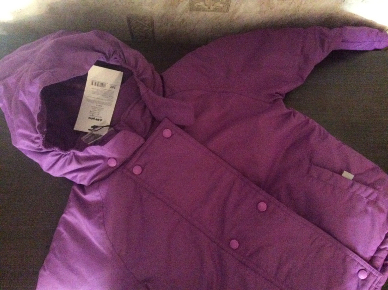 Новое пальто, капюшон отстёгивается, под рукавами плотные резинки, имеются светоотражатели, много карманов, качество очень достойное, тёплое, сезон весна- осень- ранняя зима. Размер 116. 1200 рублей ( стоило в 2,5 раза дороже)