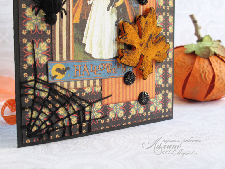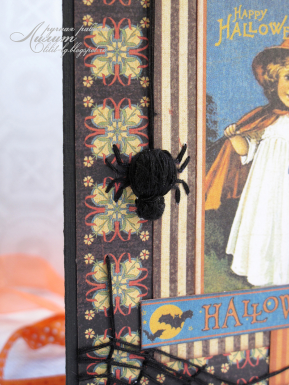 Идея вышить на бумаге моя, не знаю, применяли ли вышивку на бумаге до меня, но меня озарило в 3 часа ночи. Сначала я подумала, что хочу паутинку, а потом и возникала мысль - а как же паутина без паучка?! Вышить паука было куда сложнее, шерстяной нитки черного цвета у меня не было, а мне хотелось сделать все поскорее, руки чесались)))). Пришлось заменить на обычную нитку сложенную в несколько раз.