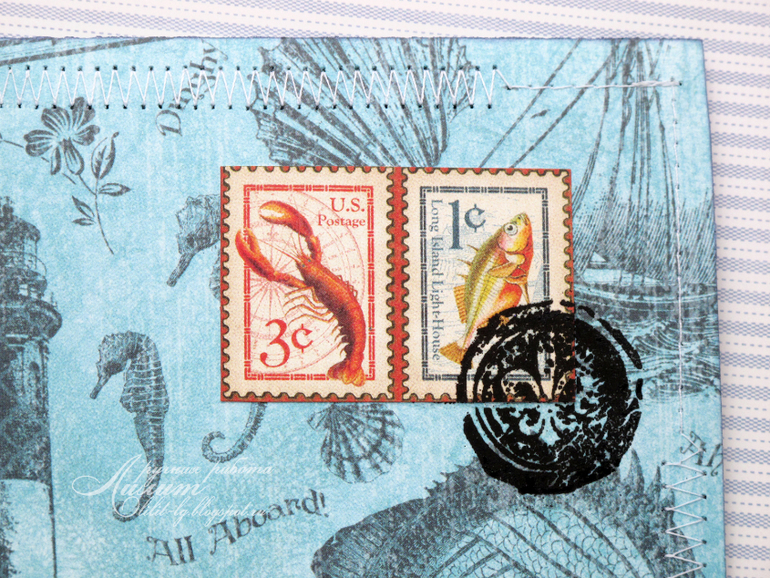 И конечно же не обошлось без марок, как же без них. Так пожалела, что у меня не было штампа почтового в надписью Саратов. Питерский скрапклуб выпускал коллекцию почтовых штампов, теперь надо будет прикупить)). Тут пришлось использовать единственный почтовый штамп, который у меня был.