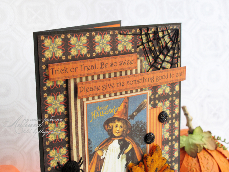 Я готовлюсь к Хэллоуину, делаю декор для дома и чтобы все было идеально, мне не хватало открытки. Набора бумаг специально для Хэллоуина у меня не было, но зато остались обрезки Graphic 45 из коллекции "Place in Time" и листы из набора "ABC Primer". Открытку делала на одном дыхании, так мне понравилась работать с Graphic 45.