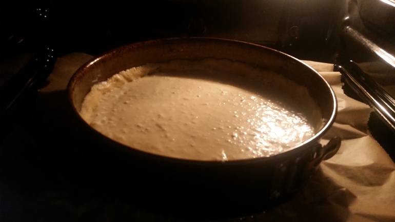 Вылить на пирог и на 5-10 минут в духовку до розового цвета. Ммм... Вкусняшка! Приятного аппетита)