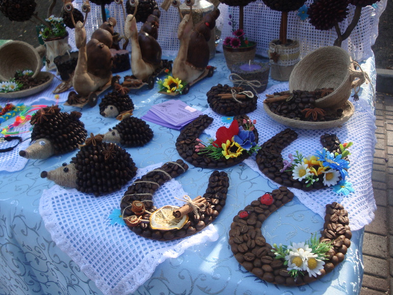 РукоделиеВыставка проходила в рамках фестиваля "Кофе и шоколад". Мне очень повезло - с чисто кофейной тематикой была я одна, поэтому, планировавшиеся два дня выставки ограничились только одним - у меня практически все разобрали!) Первыми ушли фасолевое деревце и Йожики. Разобрали, в основном, всю мелочевку и, как ни странно, самое дорогое. А еще забрали кофейный зонтик (который, кстати, я так и не сфоткала), который я вообще не планировала продавать - взяла ради антуража! Устала я очень! Мы даже не пошли вечером гулять, я в 11 уже вырубилась. Благо дело, приехала моя мама, и я в воскресение смогла подрыхнуть до 10 утра)