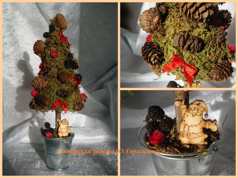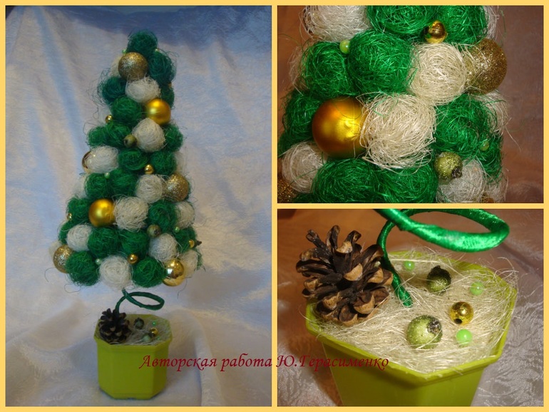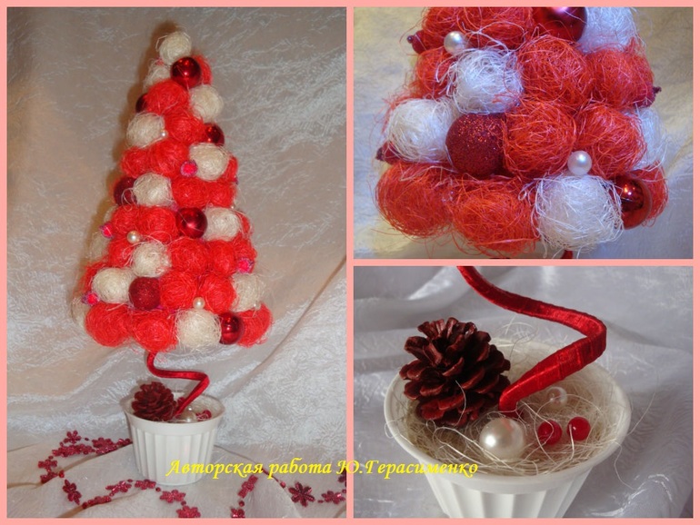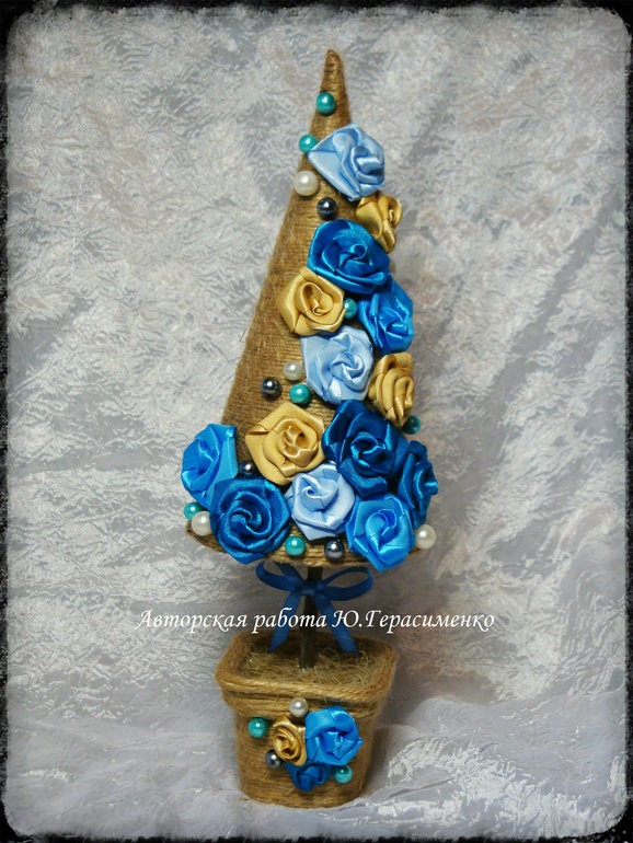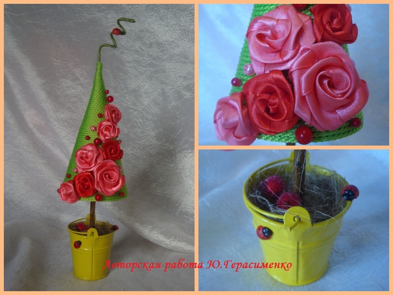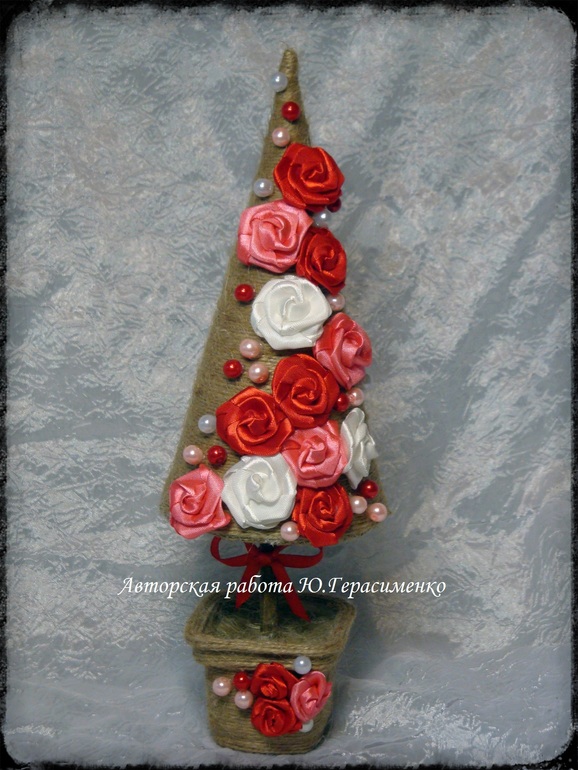 Шпагатная ёлочка с розами из атласных лент, 120 грн (первоначальная цена - 150 грн)
