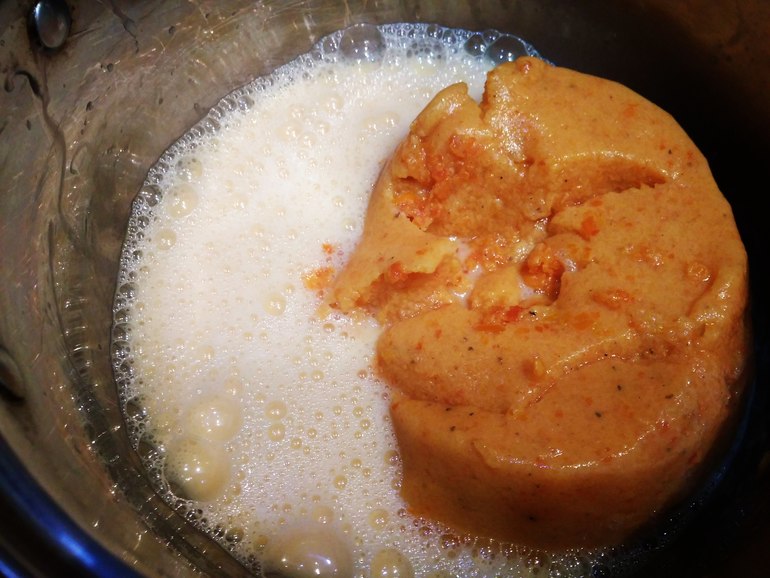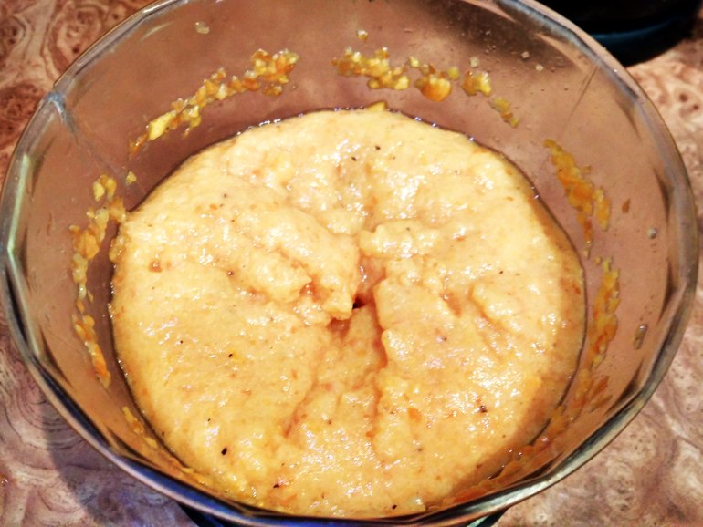 Переходим к тесту. Подготовим хурму: моем, пюрируем в блендере.