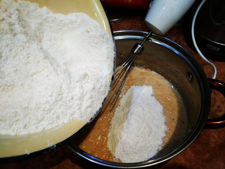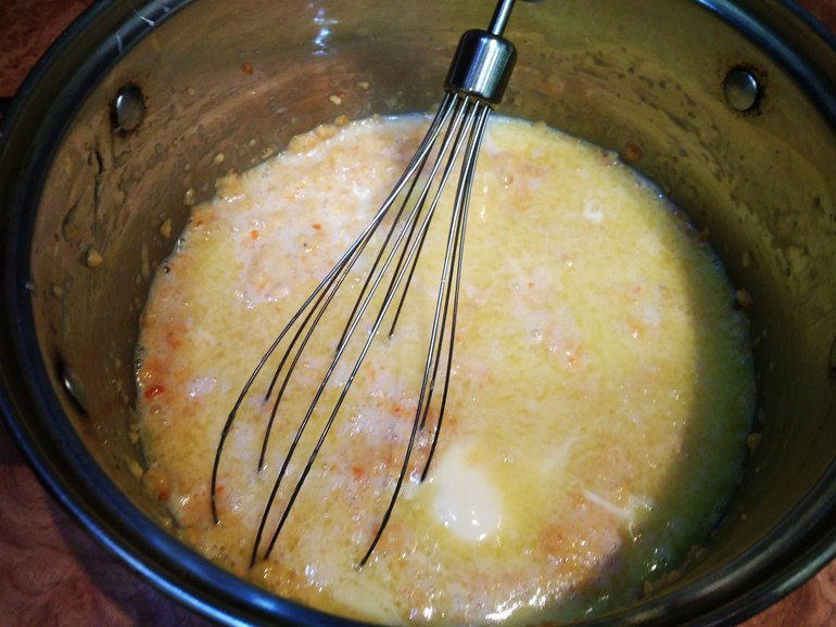 Смешиваем до однородности. Добавляем растопленный маргарин (масло).