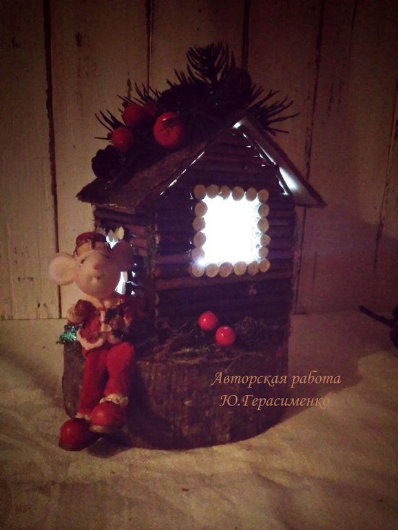 Продажа рукоделок и прочегоА у меня новинка! Оригинальная композиция в виде домика-подсвечника, который можно использовать и в качестве ночника. Композиция выполнена в эко-стиле.