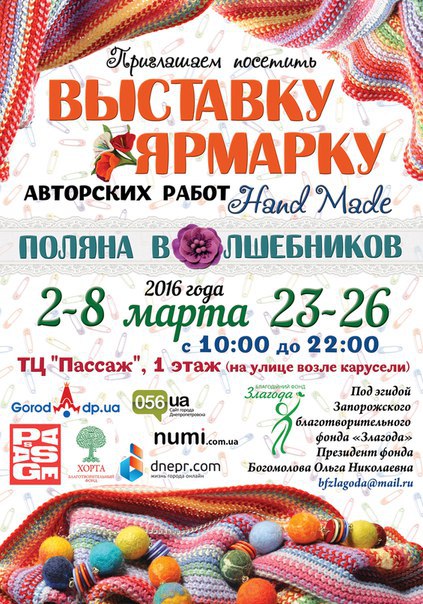 Друзья! Приглашаю всех на выставку-ярмарку в честь Дня города, которая будет проходить 10 сентября 2016 года на проспекте Д.Яворницкого (бывш. К.Маркса) напротив горисполкома. Приходите, будет много интересного!