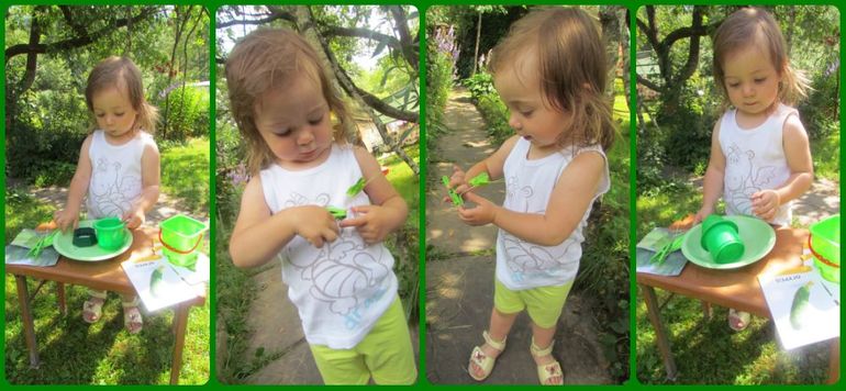 Здесь, на даче, нас каждодневно окружает обилие зелёного цвета! Поэтому первым делом я обратила на это Анютино внимание!
