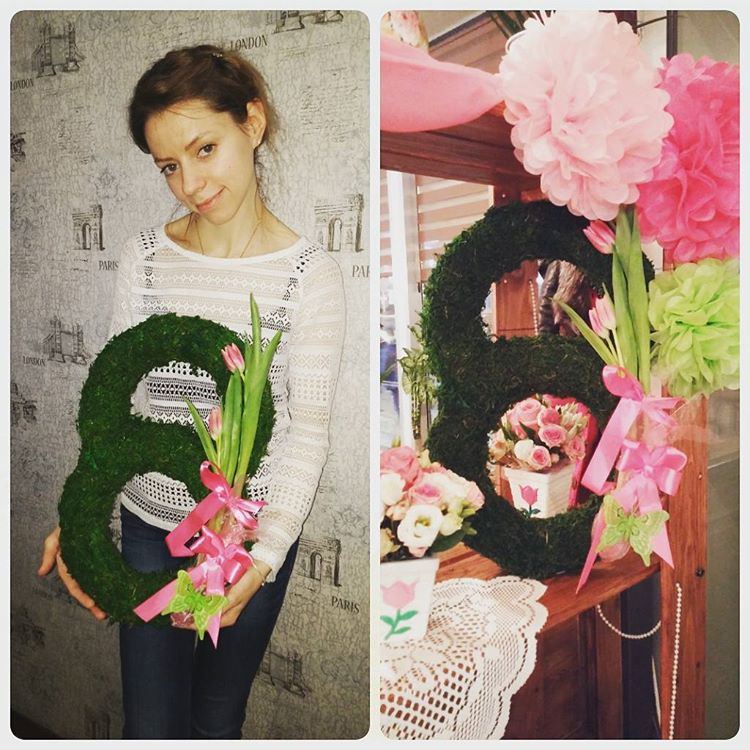 Предпраздничный день был посвящён созданию вот этой фото-зоны в любимом @jerrys_pub. Почти на 100% воплотила желаемую идею 😋 Довольная и счастливая!) фотографии хорошего качества будут в ближайшие дни, а пока покажу кадры с телефона....Не 6-го "травилась" морилкой 🙊😷👃 Этот оттенок наиболее подходящий! 🌹🎨🎀🌺👌💐