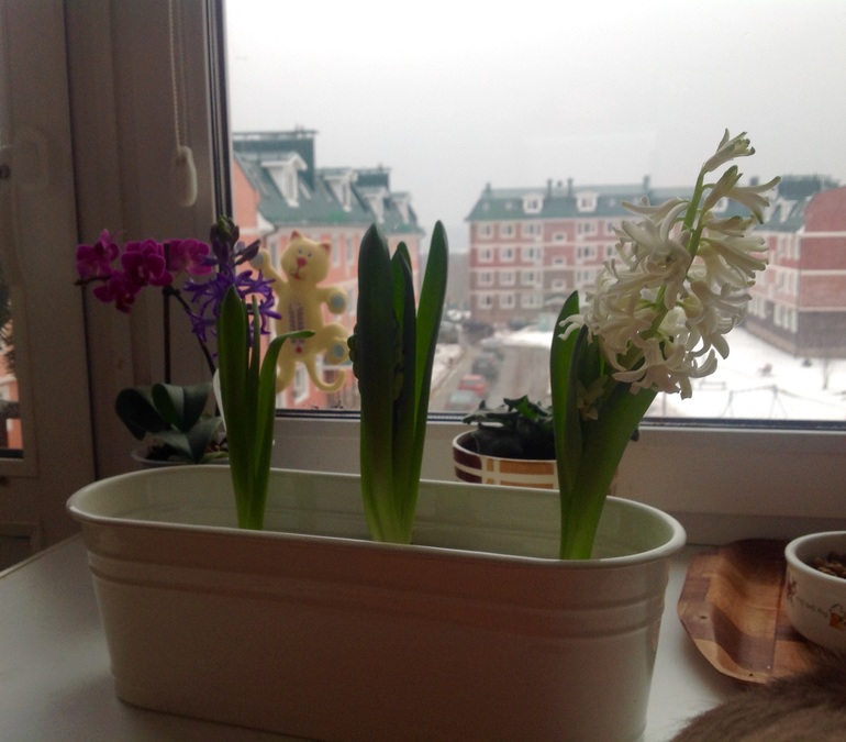 Кошкина столовая теперь на подоконнике - младший сын в Дашины миски так не может влезть.
