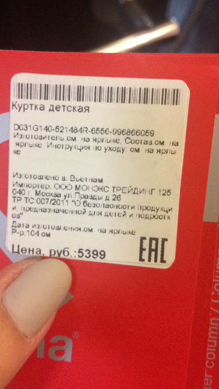 Рейма тек. Написано что она 104, но мы покупали на дочку, когда рост был 110, рейма большемерит. Отходили одну весну и очень. Покупали за 5399, отдам за 2500. Состояние идеальное.