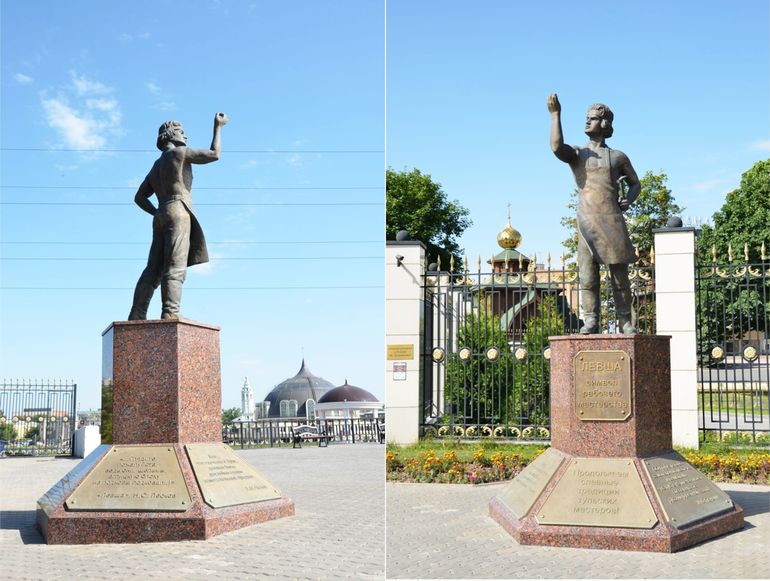 Рядом находится памятник Левше - тому самому, что подковал блоху.