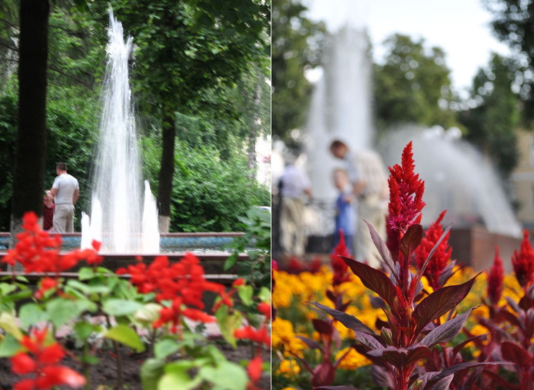 За сквером располагается площадь Искусств и вход в любимое место отдыха туляков - центральный парк им. П. П. Белоусова. Но в парк можно вернуться чуть позже, а я предлагаю пройтись до улицы Первомайской, посмотреть на красивые застройки купеческого города и перекусить. Пройти про промежутку от стадиона до Первомайской приятно, потому что прогулку будут сопровождать цветы и фонтаны, пусть не самые красивые, но все же оживляющие атмосферу города…
