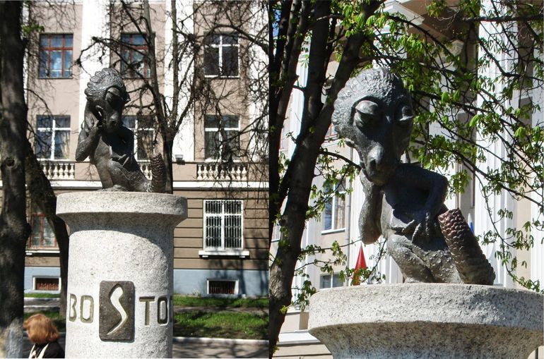 Пройдя спортивный корпус ТулГУ (большое белое здание), мы попадаем ко второму корпусу, около которого есть небольшой, но очень интересный памятник - памятник студенческому Хвосту. Небольшой дракончик без хвоста символизирует успешную сдачу сессии студентами. Основатель этого необычного проекта и автор идеи тульский бизнесмен, поэт и издатель, бывший студент Игорь Золотов. Памятник имеет небольшой размер, всего около 30 см высотой, но весит достаточно прилично - примерно 10 килограмм. Причиной этому стало то, что он отлит из медных пятаков, которые, согласно широко распространенной примете, приносят удачу на экзамене.
