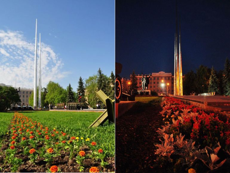 Место величественное, но достаточно пустынное. Может быть, сказывается не очень удачное ее расположение на пересечении улиц. Уже давно администрация города мечтает сделать из этого места что-то вроде Поклонной Горы в Москве. Но пока все чаще на площади проводятся массовые мероприятия, нежели там кто-то просто гуляет. А пройти по площади стоит! Само по себе место очень красивое!