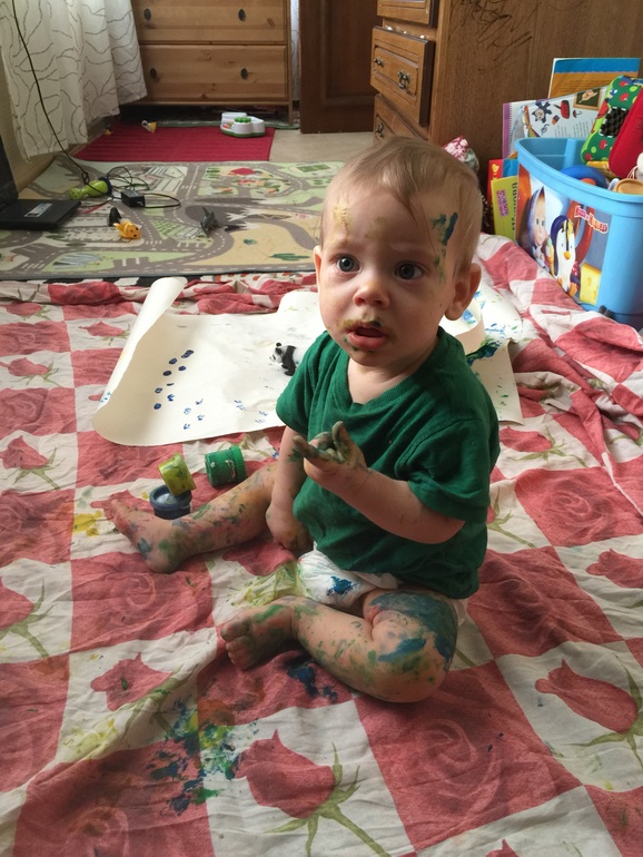 Ахах:-) :-) классно! Я тоже своему такое пыталась устроить, но он тогда лишь пальцем трогал краски и бризгливо кривился:-) постарше когда был как то пару раз повеселились с красками, но как то моего не впечетляет:-)