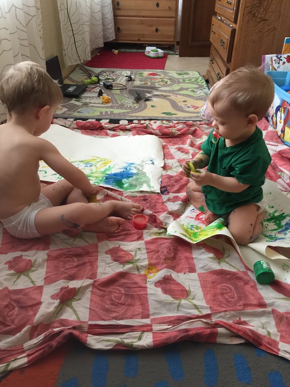 В ванной мне не понравилось. А на полу на простыне- красота . Сейчас вообще очень тяжело с двумя что-то мутить, то драки , то слезы у младшего, практически ни чем не занимаемся.