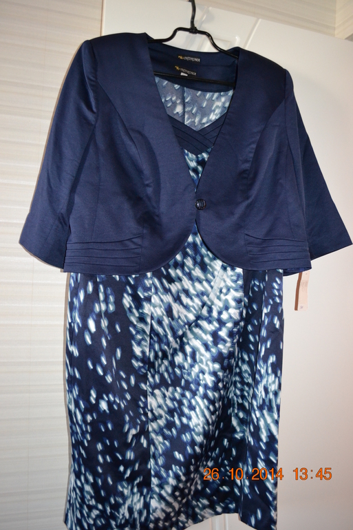 Жакет: обхват рукава получилось 21, от подмышки до подмышки впереди получилось 64. Платье: общая длина по спине 109, между подмышками 63, но там еще выточки сложно помереть на какую грудь подойдет! Талия и бедра 65.