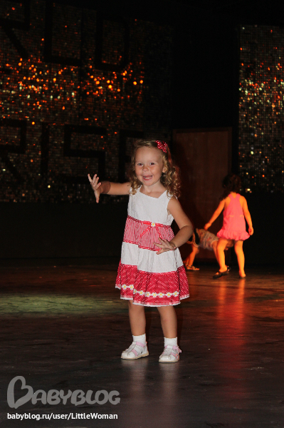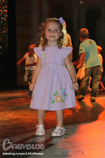 На детскую дискотеку ходили каждый день =)) Ребёнком управляло смешанное чувство восторга и страха от всего происходящего там... Первые дня два она плясала одна, потом требовала присутствия рядом бабушки - боялась видимо. Причём бабушка дергала Вику за руки, аки марионетку, при этом деть был словно зомби.... Зато дома под ту же музыку все движения повторяет сама! Чего вот ей там не танцевалось так? =))