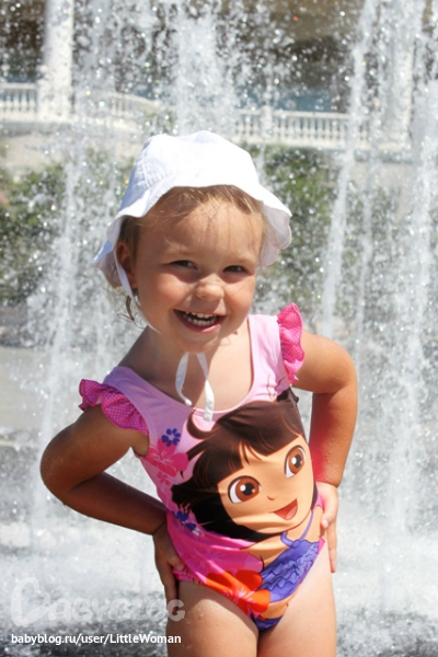 Ребёнок у меня не водный, если можно так выразиться... по крайней мере, пока. Первые дни Вика просто-напросто боялась воды. Ни на шаг не отходила даже на мелкоте, хваталась за меня.. Плавали мы с ней с кругом и у меня на горбе =)) Потом удалось её как-то шутками-прибаутками растормошить...