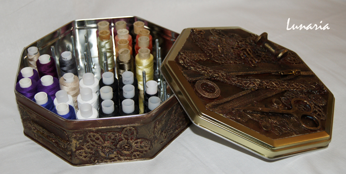 Шкатулка для ниток из жестяной коробки (ОТСЮДА):