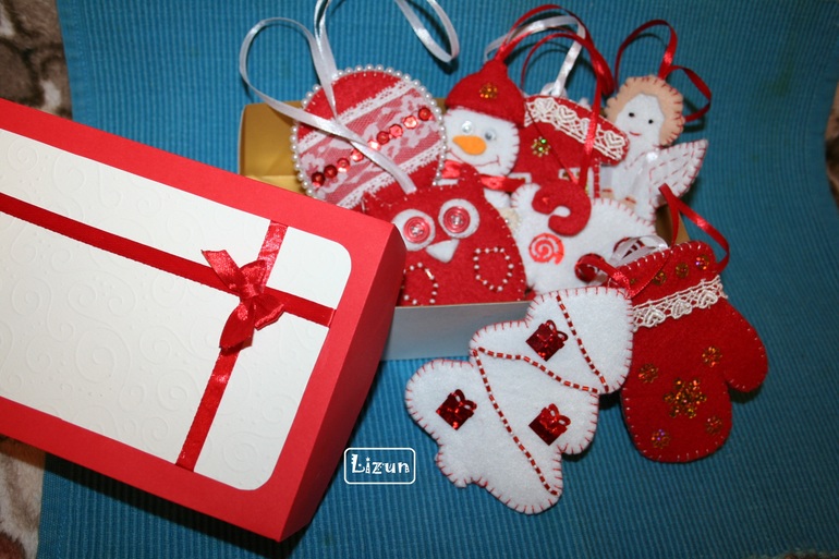 РукоделиеДумаете где я пропала? А я вся в рукоделии и в новогоднем настроении. Вот сделала еще один набор новогодних игрушек. В этот раз бело-красный, следующий наверное будет бело-синий. К нему еще коробочка идет декоративная. Цена 200 грн.