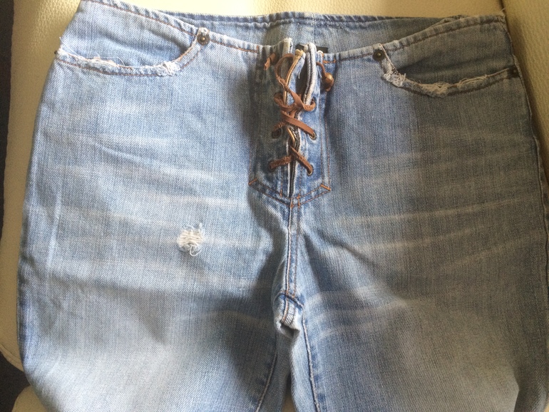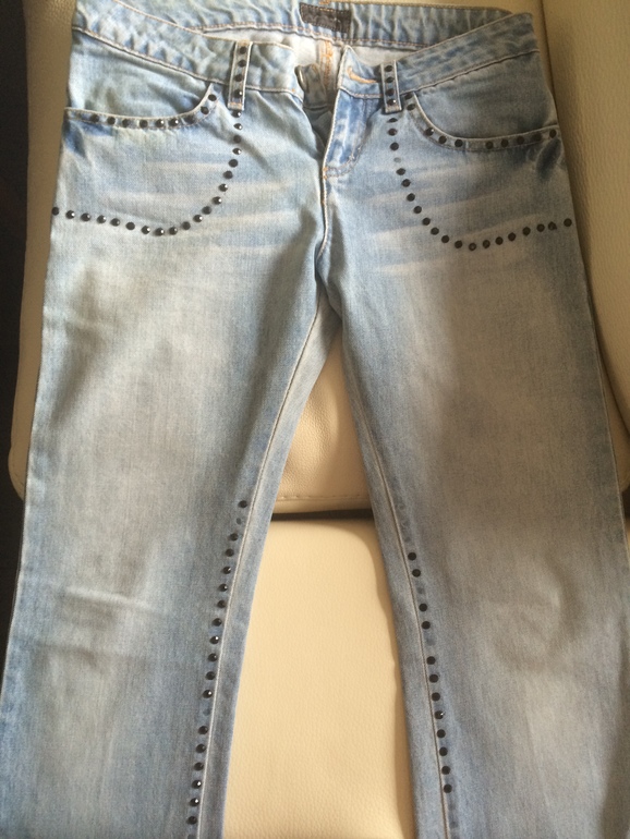 7)джинсы John Richmond ооочень красивые! посадка низкая,размер 25-26,камни сверкают.... стоили очень дорого. прямые.котон без стрейча.продажа 4000р есть места,где облетели черные камни,их можно купить и приклеить.поэтому такая низкая цена