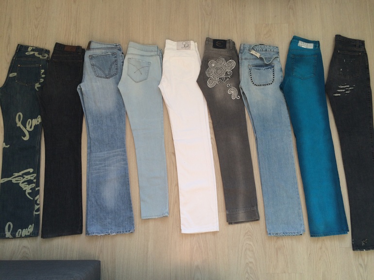 4) Just Cavalli 26-27 р , Пасадка средняя, идеальная. Смотрятся как брючки, от колена легкий клеш. Тонкие. На межсезонье теплое или лето. 3000р стоили 9500р новая цена 2400