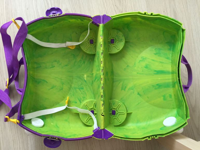 Бу 2 раза , легкий и прочный. Ребенку легко с ним в путешествии, весело, можно положить много всего в дорогу!!! Легко катится. Можно использовать как каталки, ребенок садится и отталкивается ножками держась за рожки, может катить мама за ремень или нести на плече.