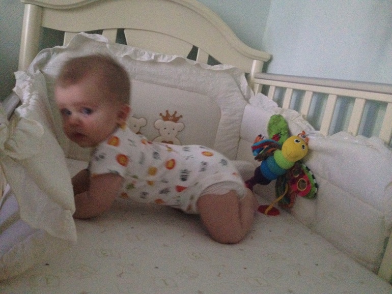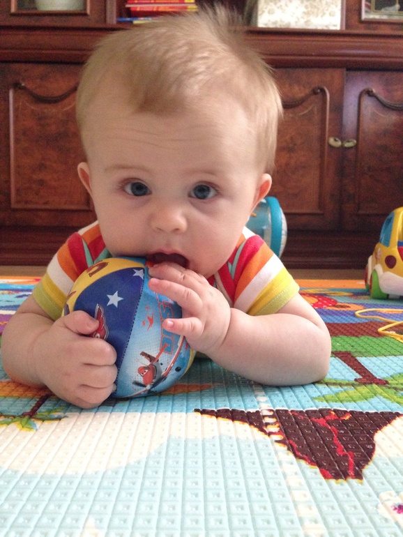 Наши основные достижения : ползаем по-пластунски, да так шустро и круто, я удивляюсь скорости его передвижения. Поворот 360 градусов на руках за секунду. Раскачиваемся на карачках. Выпрямляем ножки в положении на карачках и, получается, что стоим уголком попой вверх. И наше последнее- дри-тату!)) Держу его подмышки, а он вприсядку. Я уже все руки оборвала. Скачет и скачет мой казявкин!