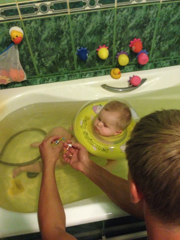 Купания стали очень опасными! Отталкивается ногами о дно и со всей дури кидается в стороны. Все купание стою над ним и придерживаю голову, чтобы не шандарахнулся о край ванной. Хоть шлем надевай.