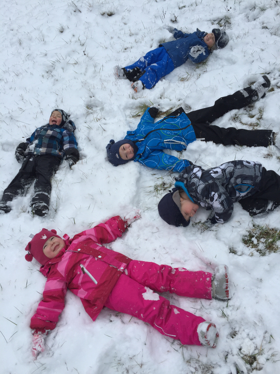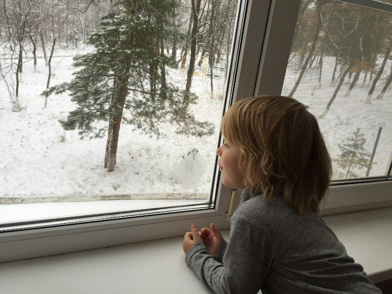 Детские эмоции такие искренние)) видимо, вчера все дети вышли на улицу попробовать первый снег. У нас около дома горка для санок и ватрушек, там и снега-то считай нет, ледянки не скользят вообще, а дети второй день с нее катаются))) У вас такой лес вокруг! Восхищаюсь!!!