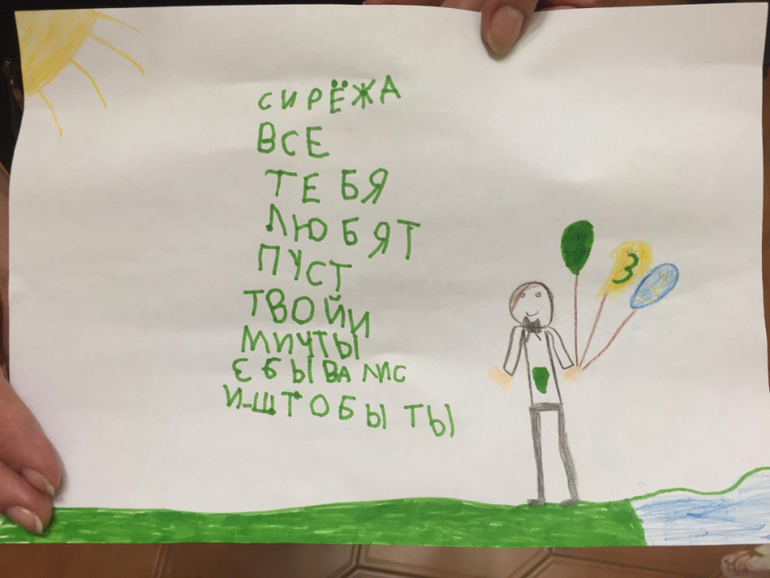 Вот такое поздравление нашли на следующий день после Серегиного Дня рождения в детском саду.